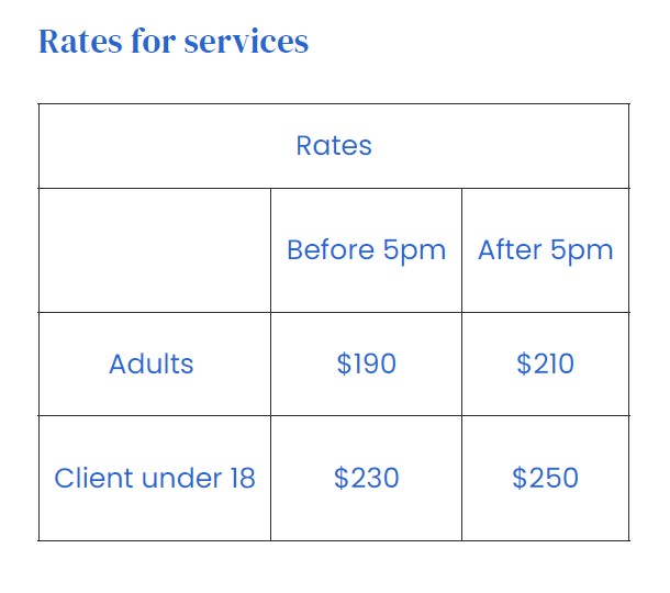 The rates we establish are a reflection of the comprehensive nature of our services. Beyond the session itself, it includes the meticulous preparation—including research, note-taking, and record-keeping—that is necessary so that we may customize the sessions to better address your concerns.